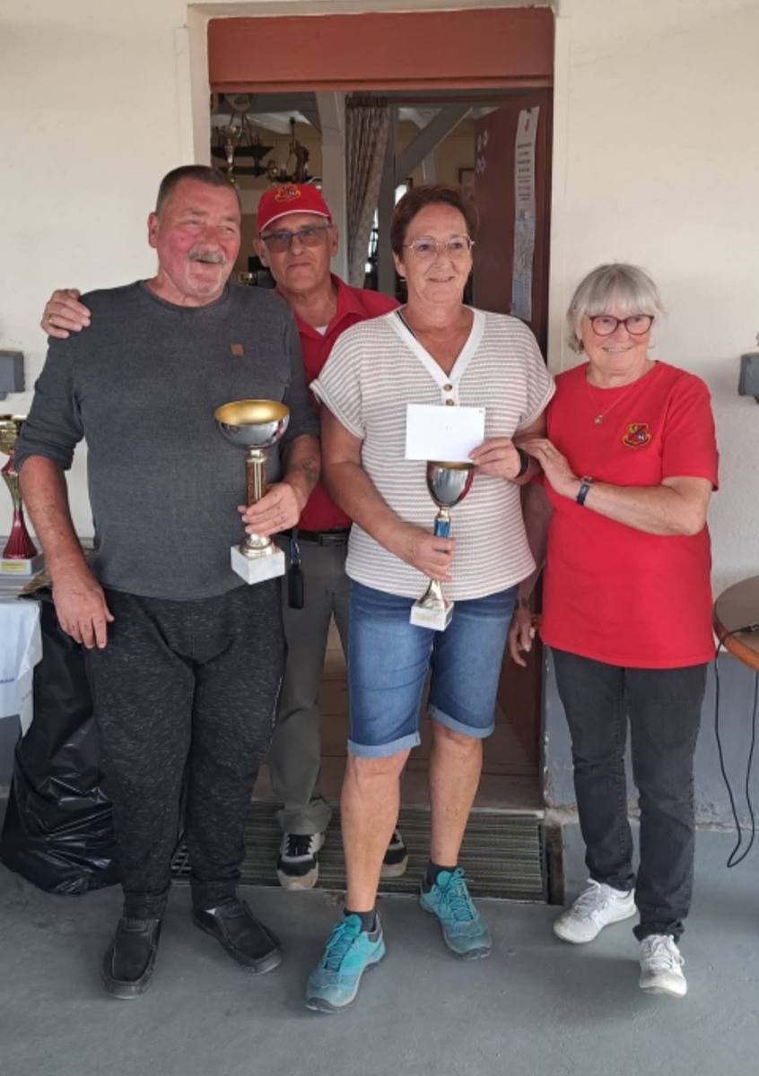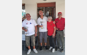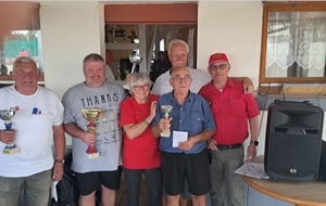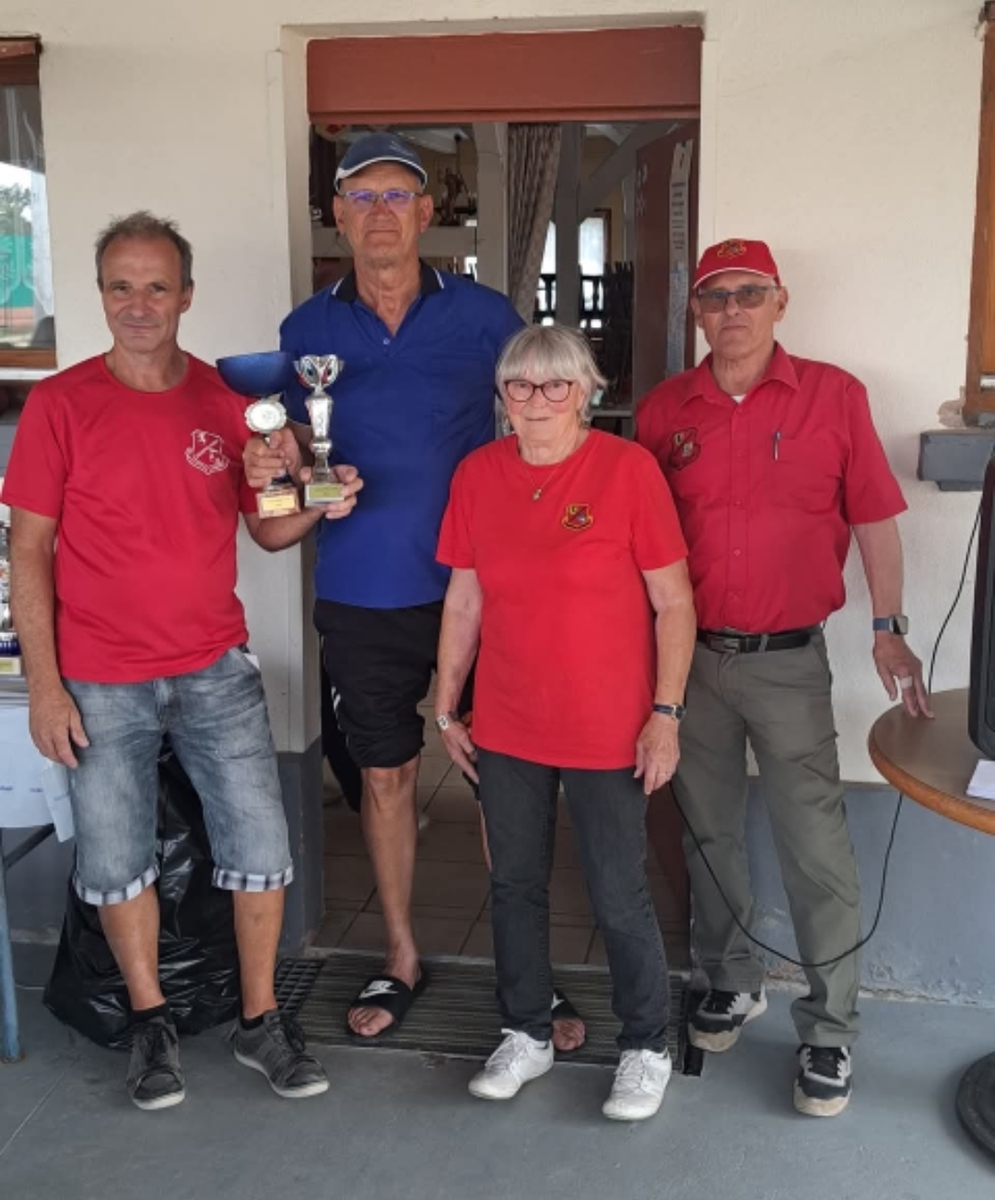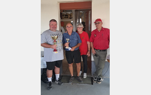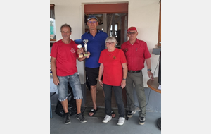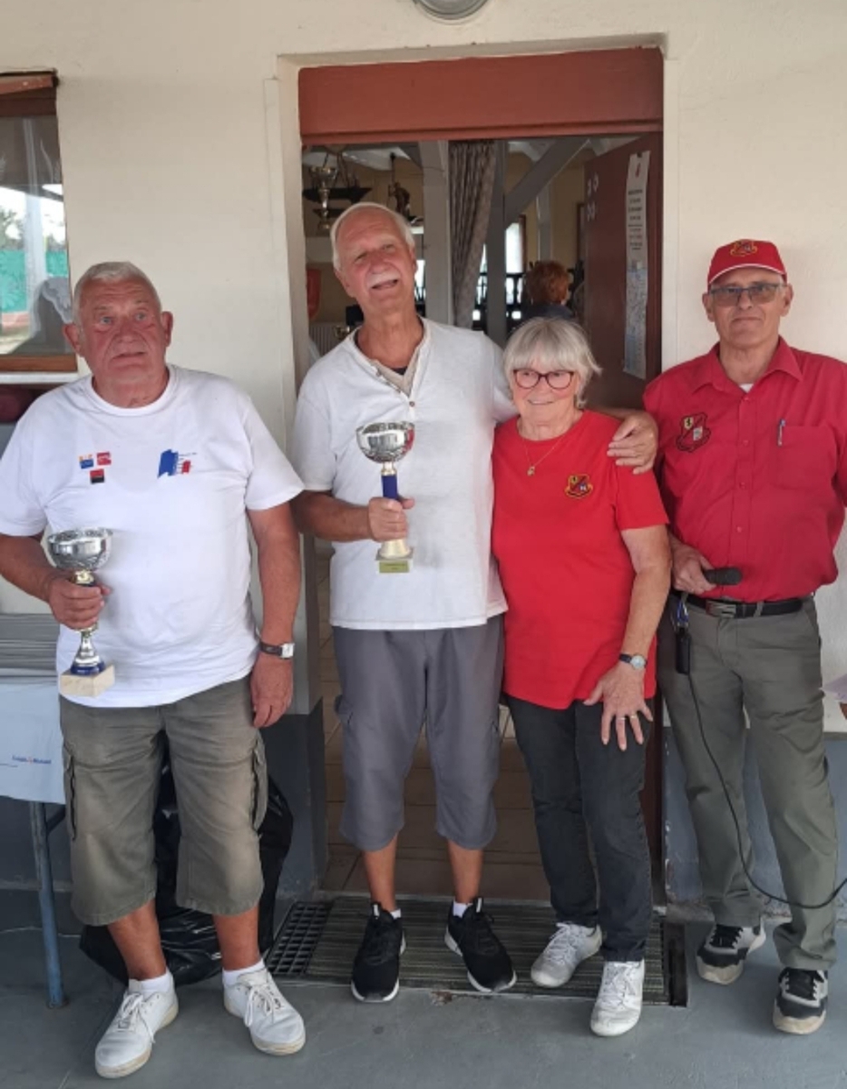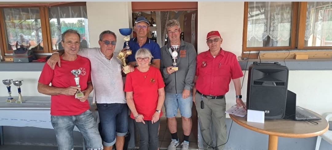 Cette nouvelle édition de notre challenge club a été un grand succès. Bravo à nos grands gagnants du jour, Jean-Pierre Robert et Alain Stoll !! Félicitations aux valeureux finalistes Michel Freiermuth et Patrick Dere. En consolante Jean-Luc Wehrle et Jean-Luc Oswald sont venus à bout de Sandrine Vincenti et Marius Wulgue. Et enfin en repêchage Thierry Groeninger et Serge Gaudry ont évincé Roland Russi et Christophe Dumur. Bravo à vous tous mais également à tous les joueurs et toutes les joueuses qui ont participé à cette belle réussite. Ce dimanche a également été l'occasion de fêter les 18 printemps (j'en oublis peut-être 1 ou 2...😉) de notre Ginette !!! Un grand merci à tous les bénévoles qui ont oeuvré à la réussite de ce challenge nouvelle formule. Nous vous donnons rendez-vous pour notre prochain challenge Ehrmann le 07 Septembre prochain. En espérant que vous viendrez toutes et tous avec la même bonne humeur qu'aujourd'hui.